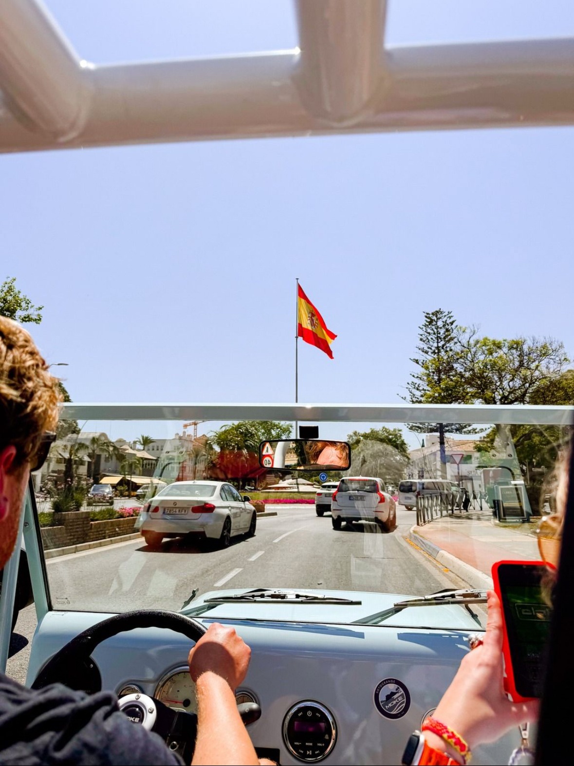 Situated just 5 minutes from our showroom in Marbella, Puerto Banús is a convenient first stop. Passing through with a Moke adds an extra dash of retro charm to the glitz and glamour of this renowned Spanish destination. As you meander through the streets in your quirky beach buggy, the vibrant atmosphere of luxury cars and yachts, designer boutiques, and lively cafes envelops you. Park up next to the luxury sportscars and do a spot of shopping. With the wind tousling your hair, adventures with a Moke provide a unique perspective, allowing you to soak in the Mediterranean allure while turning heads along the marina.